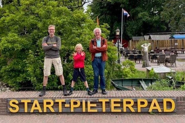 Erwin Bak (55 jaar) loopt met zijn vader Gerard (78 jaar) en zoon Maurits (11 jaar) het Pieterpad. “We maken er elke keer uitjes van 2 of 3 dagen van”, zegt Erwin. Vanwege leeftijd en fysieke conditie wandelen ze niet hele grote afstanden per dag, maar ondertussen zijn ze al wel in Limburg. Erwin: “Het is ontzettend leuk om met elkaar op pad te zijn en we zijn elke keer weer verrast hoe mooi Nederland is”.