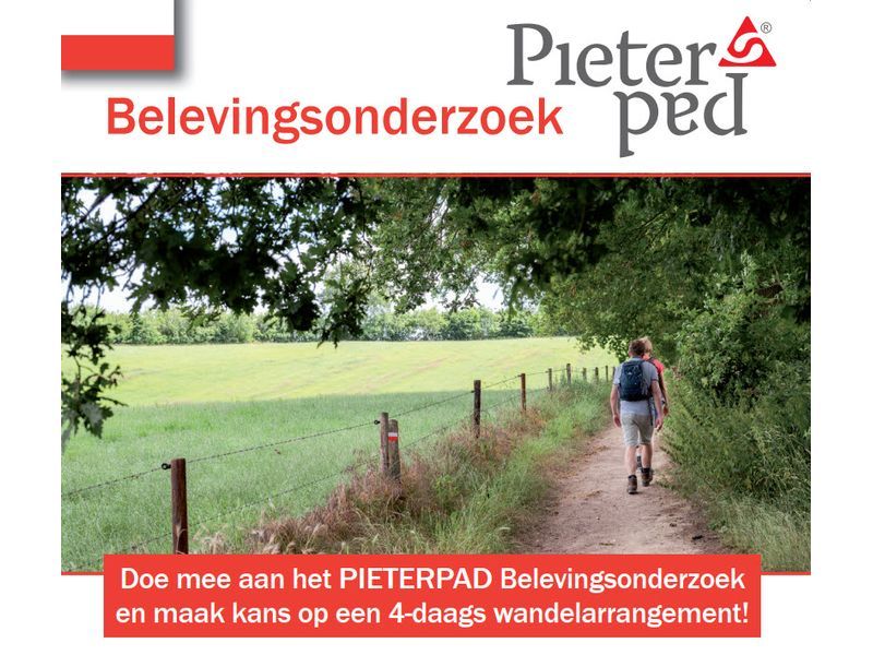 Heb jij (een deel van) het Pieterpad gelopen? Dan horen we heel graag hoe jij je tocht hebt beleefd. Jouw ervaring helpt ons om het Pieterpad nog beter te maken voor huidige en toekomstige wandelaars. Vul onze online vragenlijst in en maak bovendien kans op leuke prijzen. De resultaten gebruiken we om onze informatievoorziening en producten verder te verbeteren.
