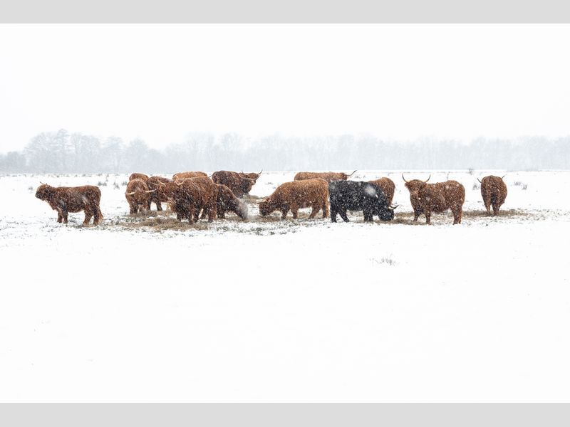 Onze fotograaf Wahid Fayumzadah zegt hierover: "Een kudde Schotse hooglanders prachtig vastgelegd in de sneeuw. Hun vacht springt eruit door het enorme contrast met de sneeuw, zo zie je ze niet vaak! Het heeft bijna een surrealistisch effect. Mooi vastgelegd! Je zou nog kunnen spelen met de uitsnede van de foto. Door bijvoorbeeld de foto van boven en onder wat bij te snijden. Dan komt de nadruk nog wat meer op de beesten te liggen en niet het grote witte vlak. Hoe dan ook een prachtige foto!"