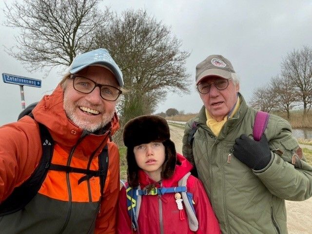 “Mijn gepensioneerde vader, Gerard, woont in Nieuwegein en ik woon samen met m’n zoontje Maurits in Amsterdam. Drie mannen/jongen in verschillende levensfases, die de conditie hebben om prima langere afstanden te lopen omdat we alle drie heel sportief zijn. Maurits begon als 8e jarige in Pieterburen en m’n vader is 80 jaar als we in 2026 op de St. Pietersberg staan. IJs en weder dienende.“