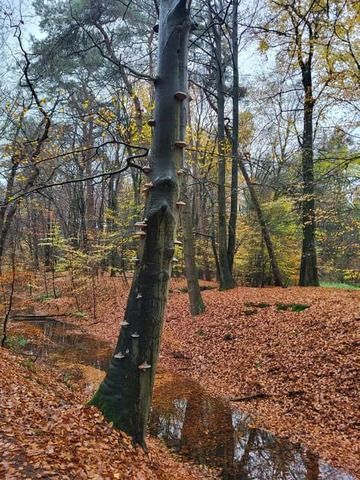 "Op de grond was het bezaaid met afgevallen blad. We moesten goed opletten waar we onze voeten neerzetten. Toen doemde deze boom vol paddenstoelen ineens op. Ons herfstgevoel was compleet inclusief een miezerregen tijdens de wandeling."