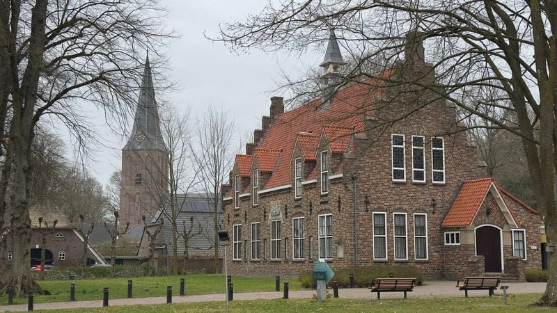 "Start van nieuwe route Sleen / Coevorden prachtig gemeentehuis van Sleeen met op de achtergrond de prachtige kerk."